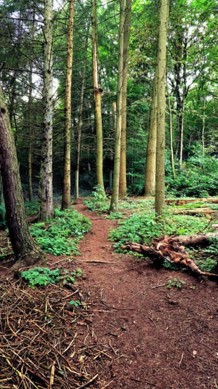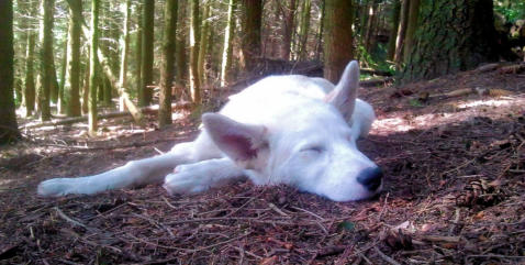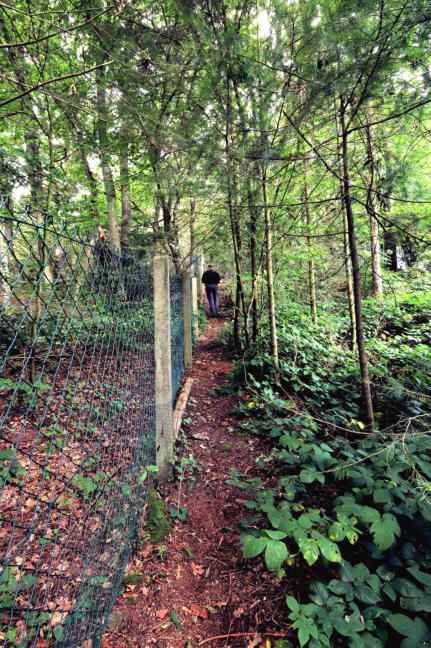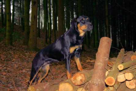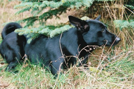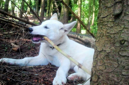 Die Hundewiese reicht bis in den Wald hinein und ist komplett