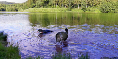 Der Stausee liegt idyllisch mitten im Wald, ca 3 km von unseren